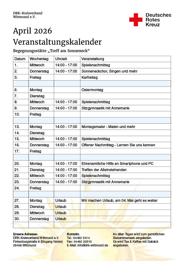 Bei allen weiteren Fragen melden Sie sich beim DRK Kreisverband Wittmund e.V. unter 04462 - 5414 oder info@drk-wittmund.de