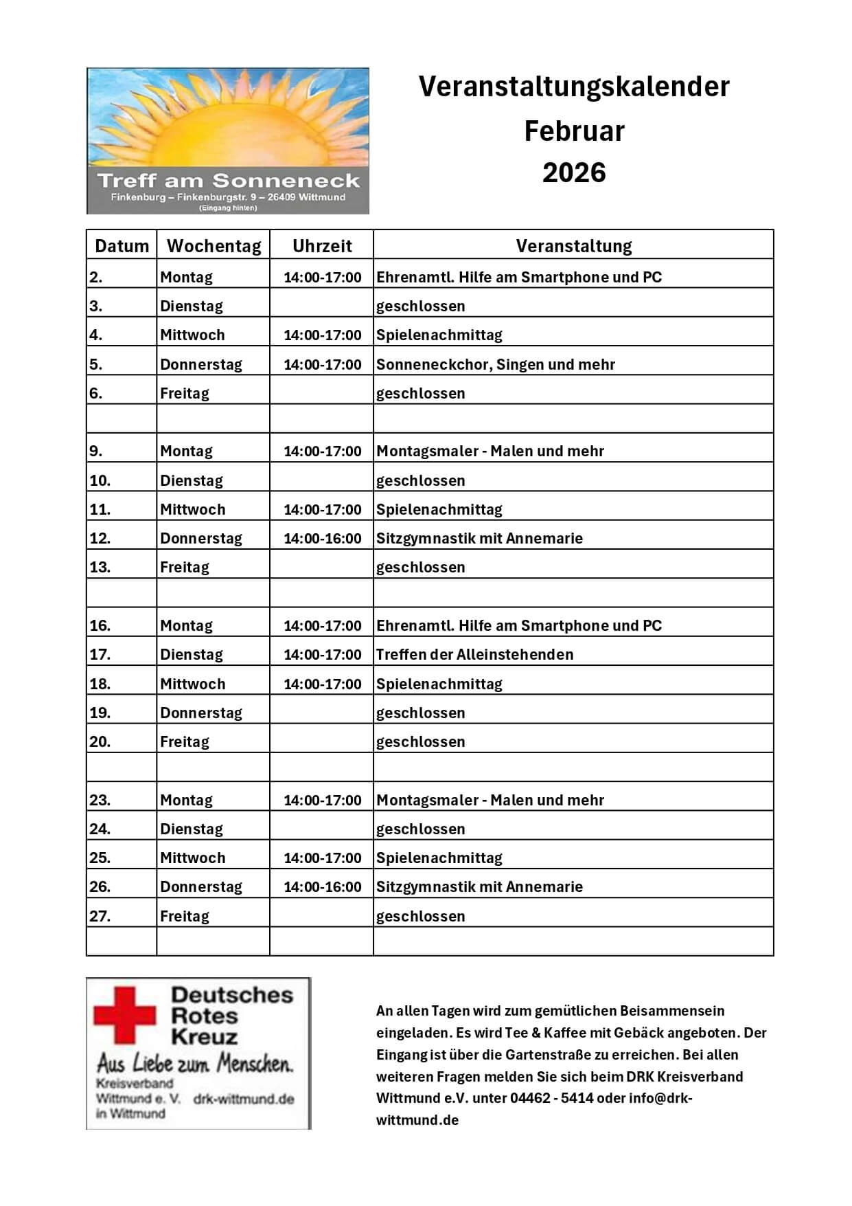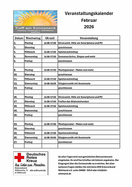 Die DRK-Begegnungsstätte „Treff am Sonneneck“ – Februar 2026