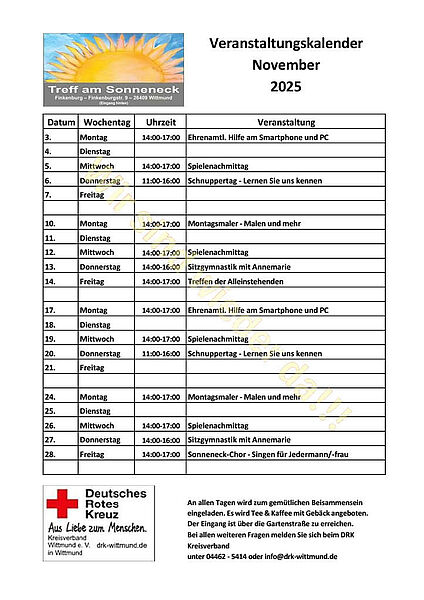 17. | Montag | 14:00-17:00 | Ehrenamtl. Hilfe am Smartphone und PC | |